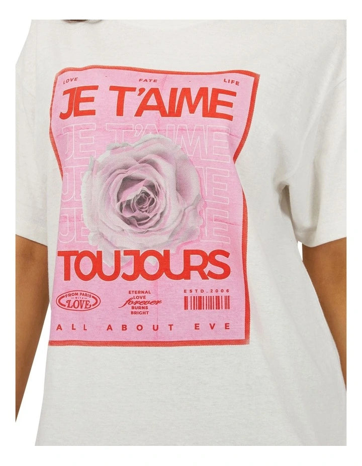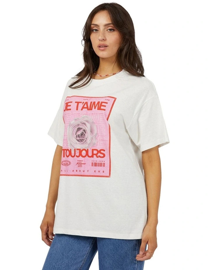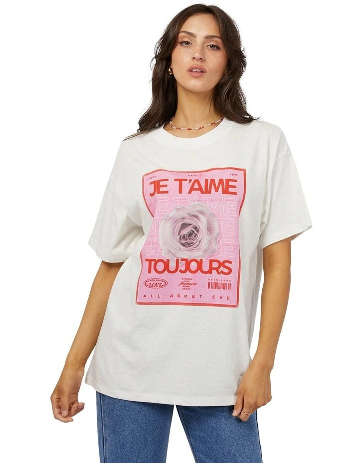 ALL ABOUT EVE Je Taime Oversized Womens Tee - Vintage White