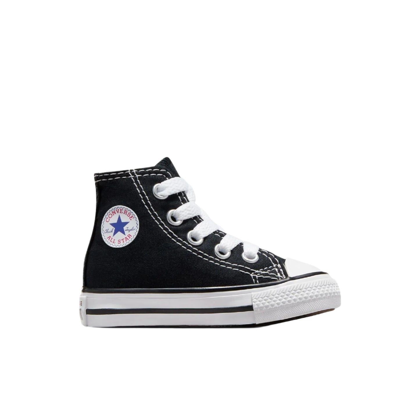 Introduce your little one to classic style with the CONVERSE Chuck Taylor All Star Infant Hi Shoe. Featuring a timeless black design, these shoes are made with sturdy materials to support growing feet. Get ready for endless playtime and stylish adventures!