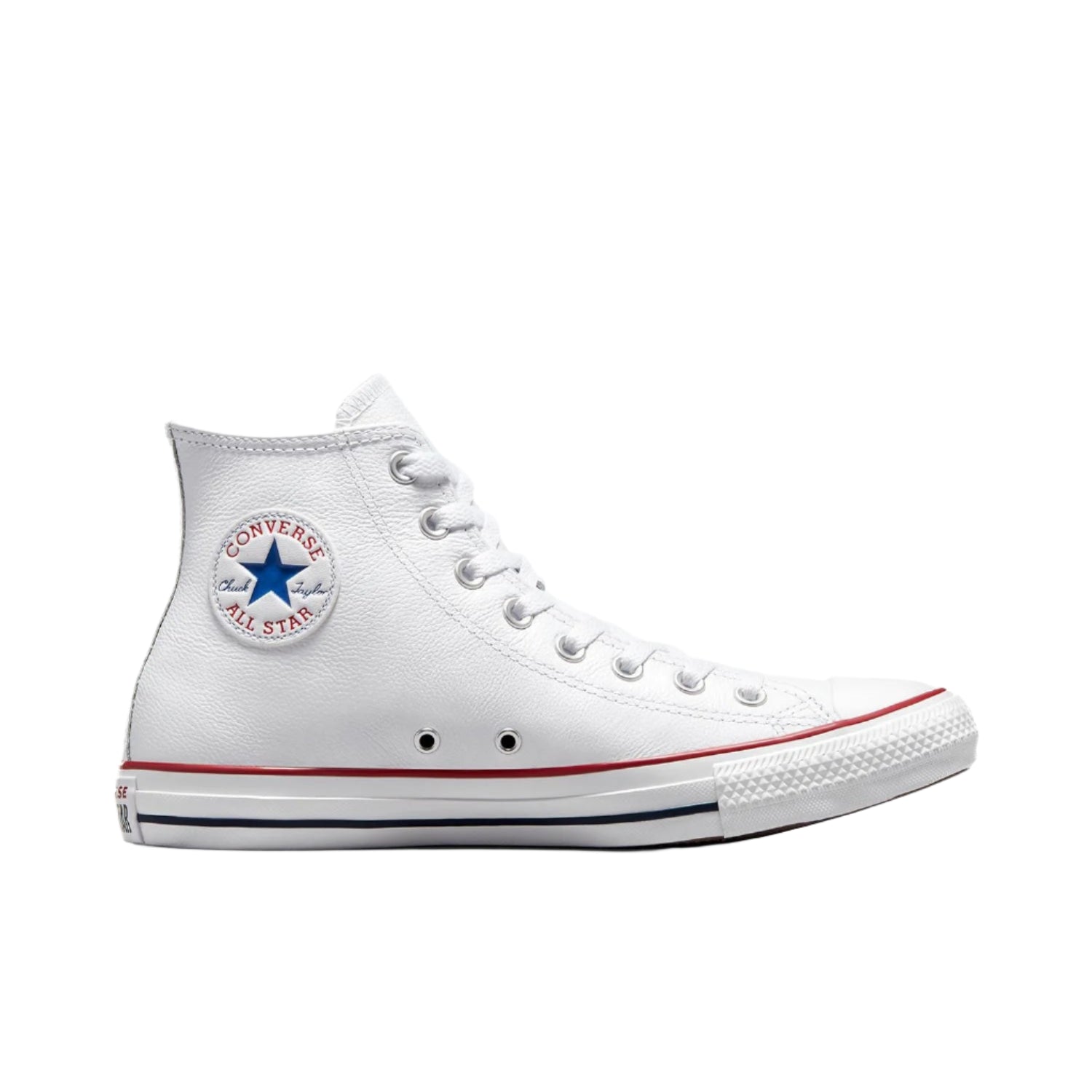 Elevate your style with the iconic CONVERSE Chuck Taylor All Star Leather Hi Shoe in classic white. Featuring a genuine leather upper, these shoes offer durability and a sleek look. Perfect for any outfit, these shoes will make you stand out in any crowd.