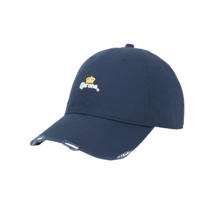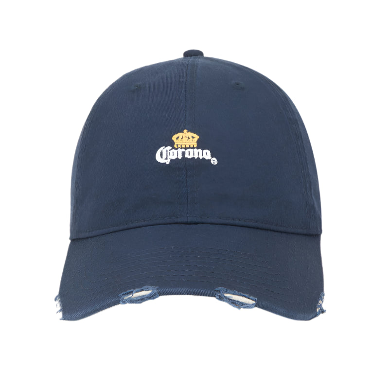 Elevate your style game with the GILROY CO. Corona Logo Distressed Ballpark Snapback Cap in navy. Made with a distressed look and the iconic Corona logo, this cap will add a touch of personality to any outfit. Its snapback design ensures a comfortable and adjustable fit. Perfect for any casual occasion!