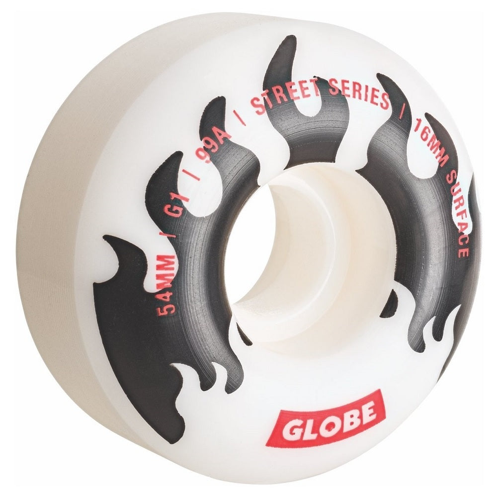 GLOBE 99A G1 Street 54mm Skateboard Wheels - White/Black/Flames