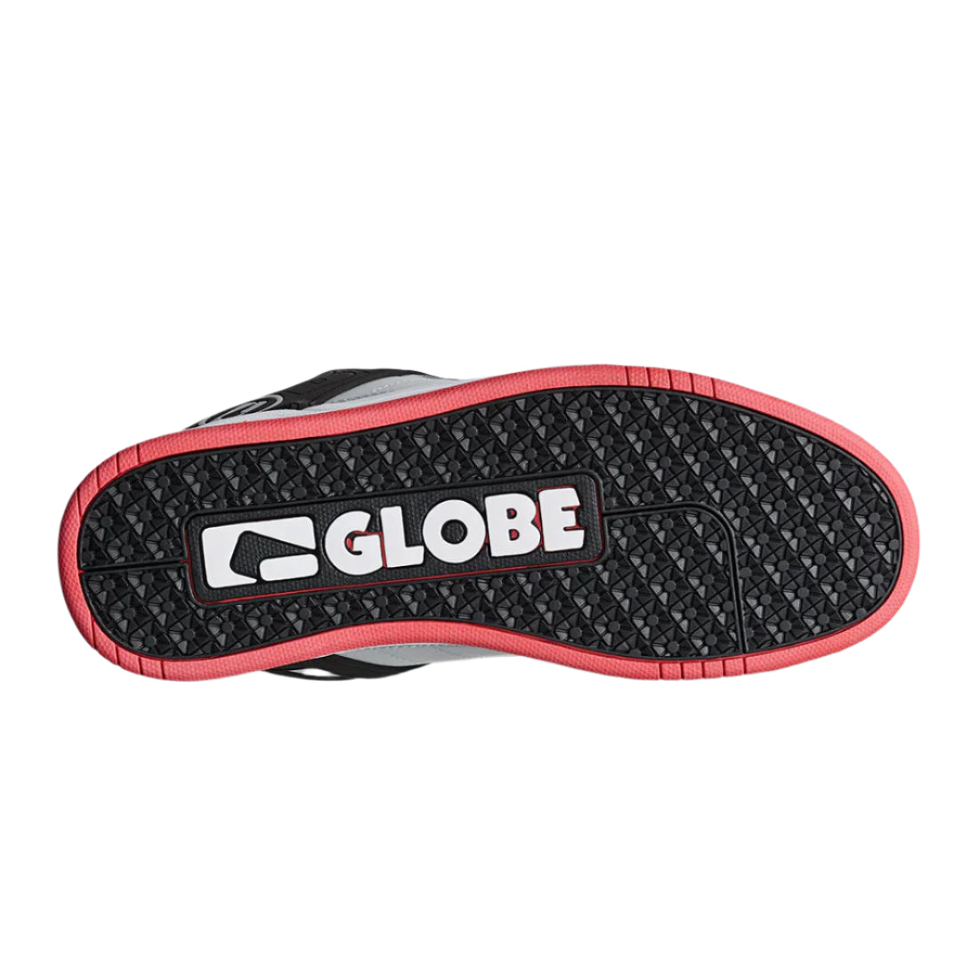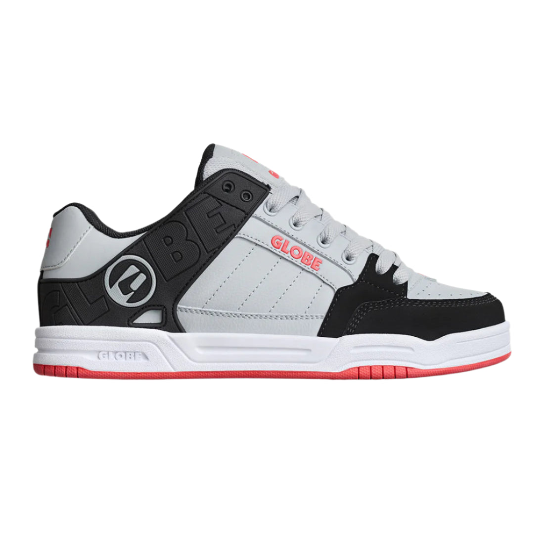 The Globe Tilt Shoe Steel Black are mens skate shoes. These are Globe's classic heritage skate silhouette. With a moulded TPR outside collar for support and durability and an enhanced sole for added grip and board feel. Made for action. Skate, school or work they are ready to wear.