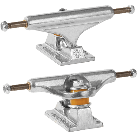 And finally an Independent truck made for 8.25"-8.4" decks, the Independent 144 STD Silver Skateboard Trucks are like all other Independent Standard truck but with the new width to fit your park board, a superior and iconic truck with precise turning geometry for increased stability when landing tricks, better ‘speed-wobble’ control and decreasing the chances of ‘wheel-bite.’ This makes Independent stage 11 trucks one of the most versatile skate trucks on the market, excelling in vert and transition, street and park skating, and general cruising and carving.