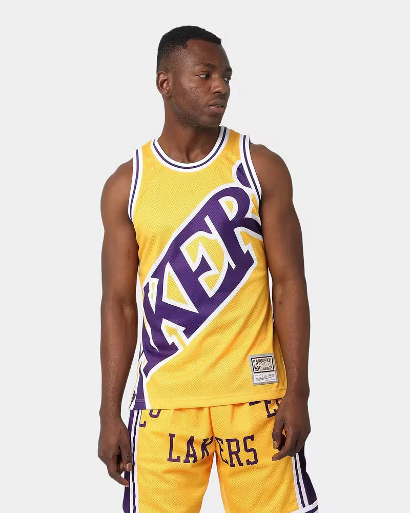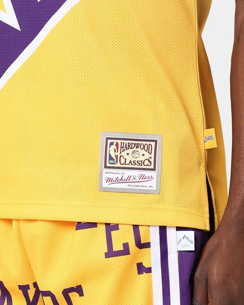 For all the ballers. The Los Angeles Lakers Blown Out Jersey is made with breathable polyester mesh with side vents to keep you cool. It's lined with anti-irritation ribbed trim at neckline and armholes for added comfort. Finished with team graphics and the Hardwood Classic patch on the hemline for an on-court look.