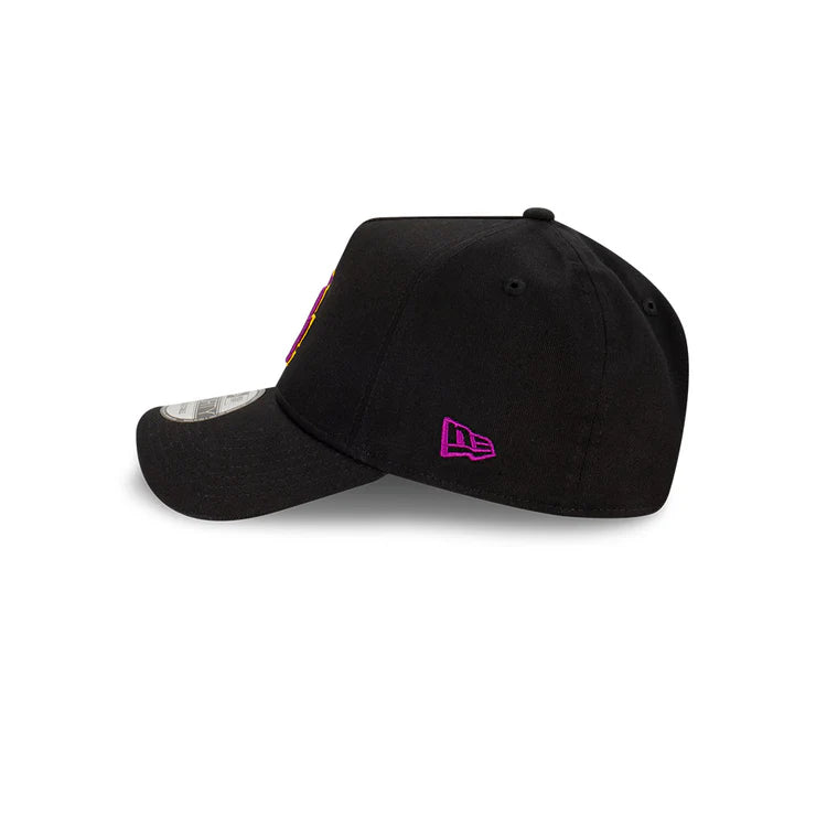Experience the best of both worlds with the NEW ERA Los Angeles Dodgers 9FORTY A-Frame Snapback Cap in Black/Passionfruit! Combining style and functionality, this cap features the iconic Dodgers logo and a trendy passionfruit color scheme. Stand out from the crowd and show off your passion for the game!