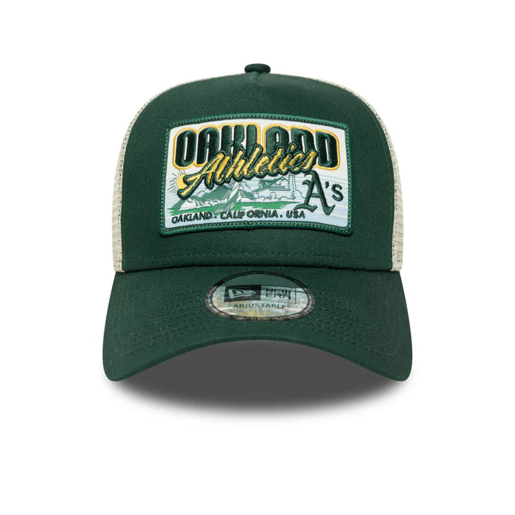 NEW ERA Oakland Athletics MLB Patch 9FORTY A-Frame Snapback Trucker Cap - Dark Green/Cream