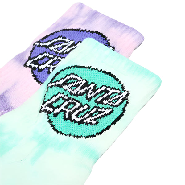 SANTA CRUZ Other Dot Youth 2pk Mid Socks - Pale Pink/Light Green Tie Dye