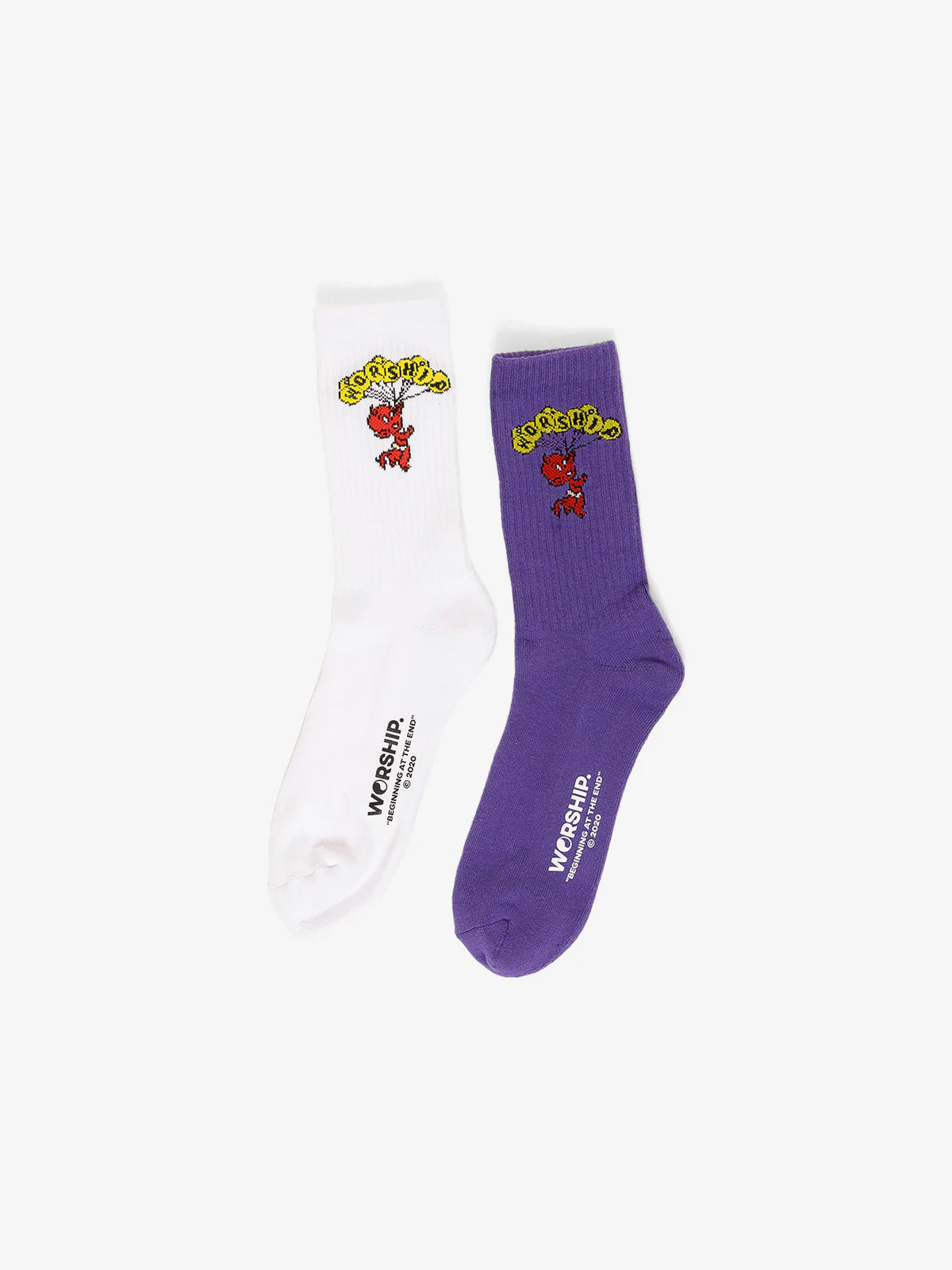 WORSHIP Floater 2PK Socks - White/Prism Violet