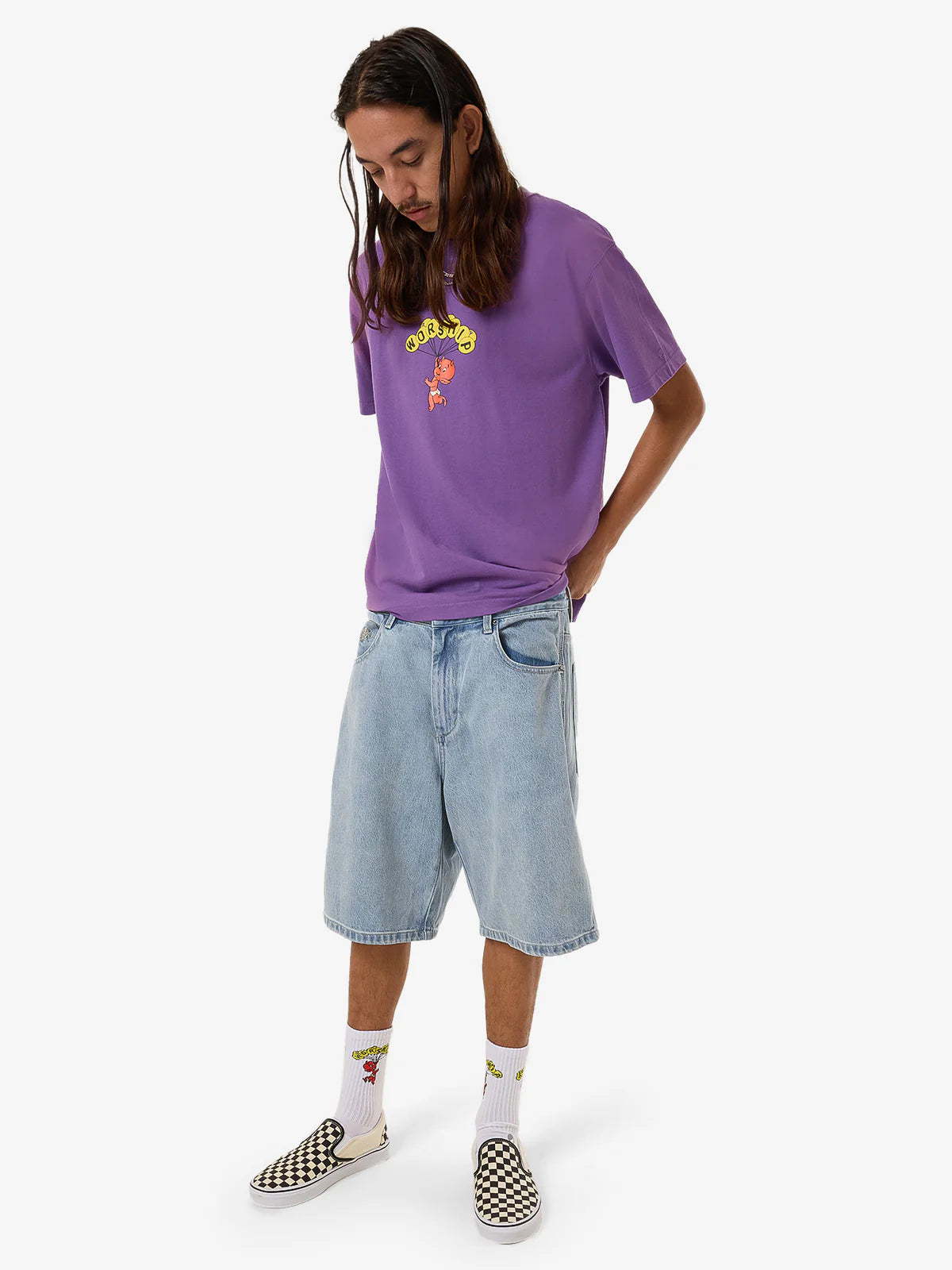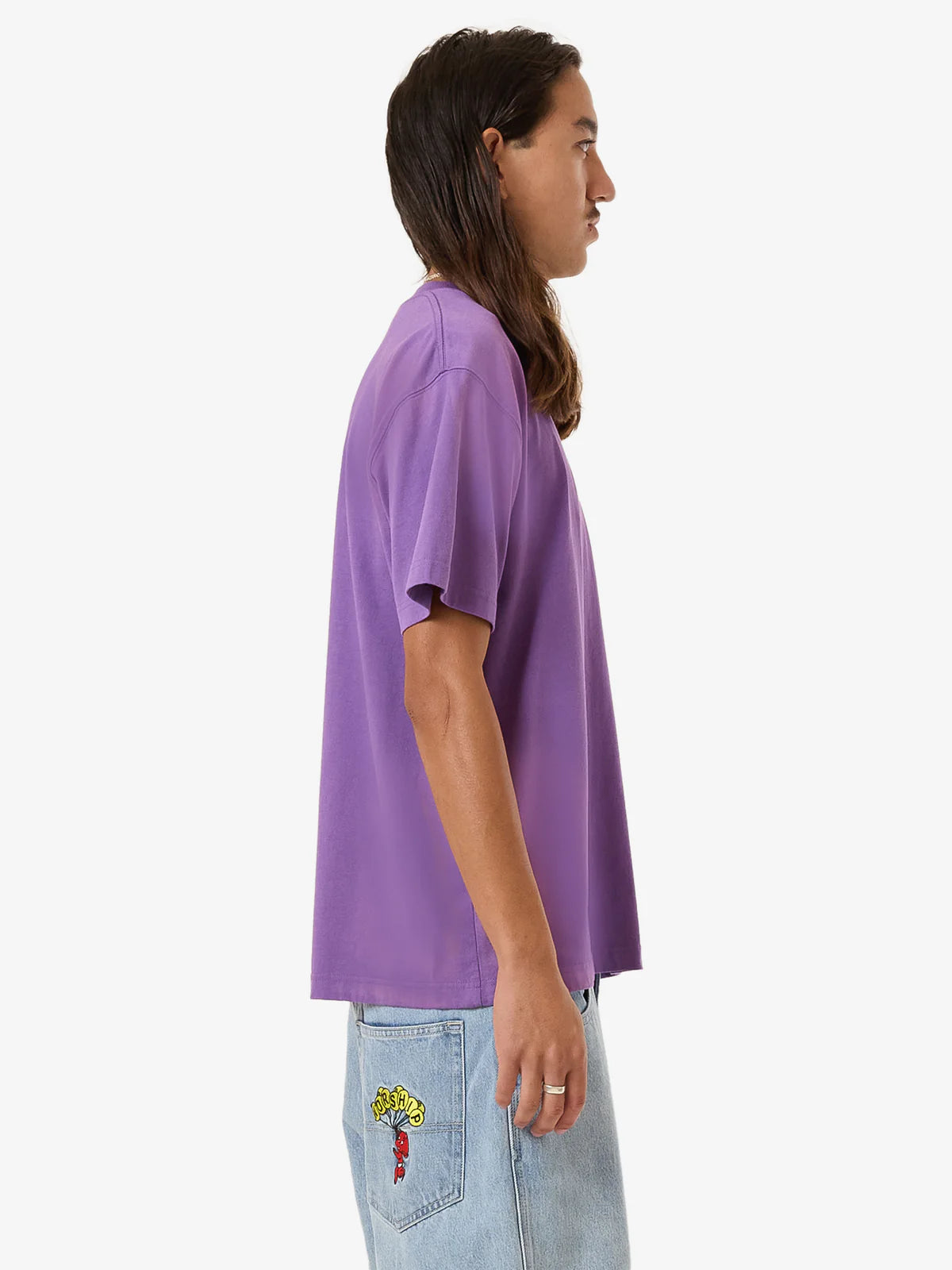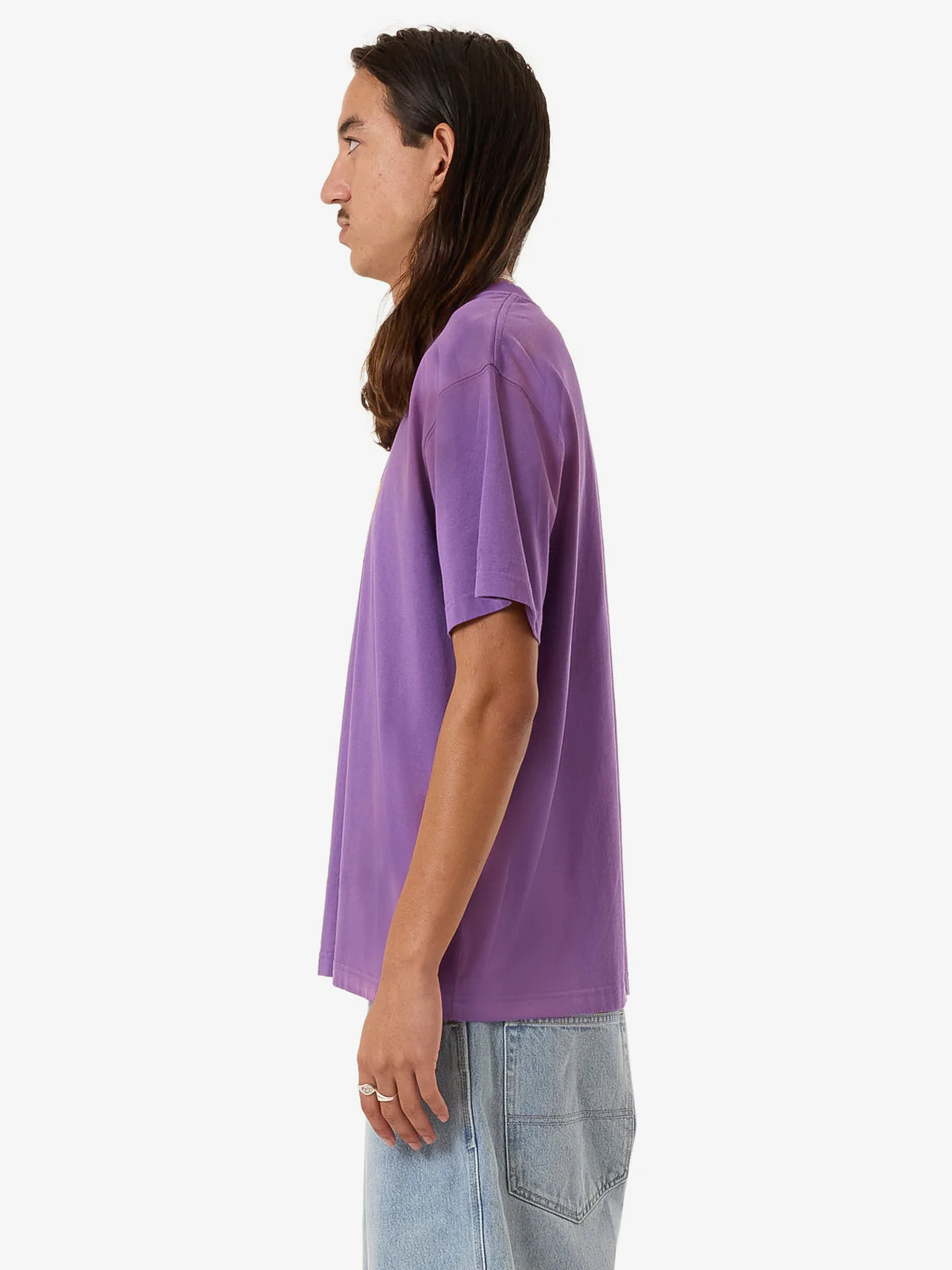 - Made from hard-wearing 100% cotton jersey, the Floater Vintage Tee brings a pop of colour to everyday wear. Available in a washed-out prism violet fade colourway, this relaxed-fit tee is soft, breathable and vintage-inspired with a playful graphic in raised puff print. Finished with a ribbed crew neckline, a straight hem and twin-needle stitched hems and sleeves.