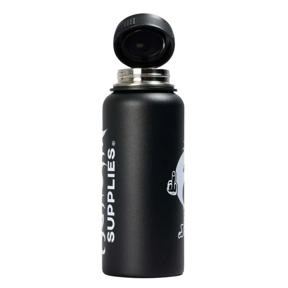 The WORSHIP Fuzzguzzler2.0 Drink Bottle in black brings a raw, unapologetic edge to staying hydrated. Crafted with rugged durability and a dark, bold design, this bottle is your perfect companion for the streets, gigs, or everyday chaos. Keep your drink cold or hot while reflecting your grunge attitude—built tough to match your relentless vibe.