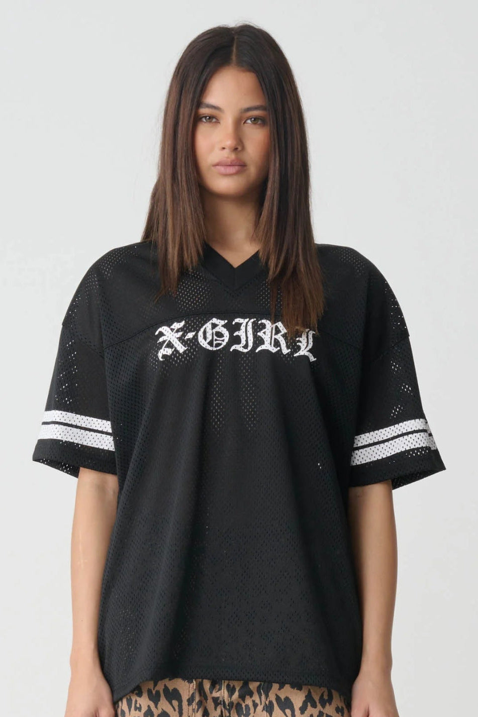 XGIRL Blackletter Mesh Football Womens Tee - Black