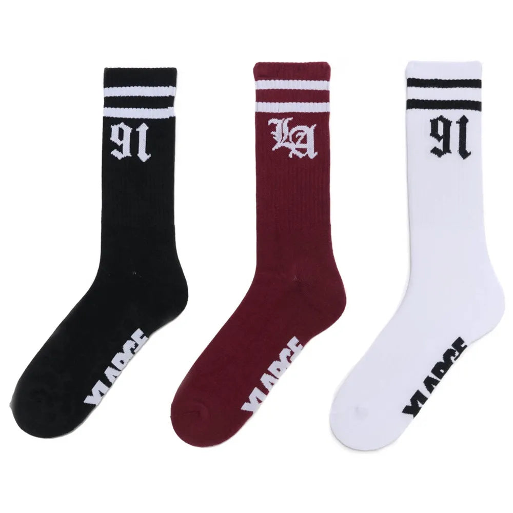 Introducing the XLARGE Old English Stripe 3-pack men's socks - the perfect combination of style and comfort! Featuring a classic Old English stripe design, these socks are made from soft and durable materials, ensuring all-day comfort and support for your feet. Upgrade your sock game with XLARGE!
